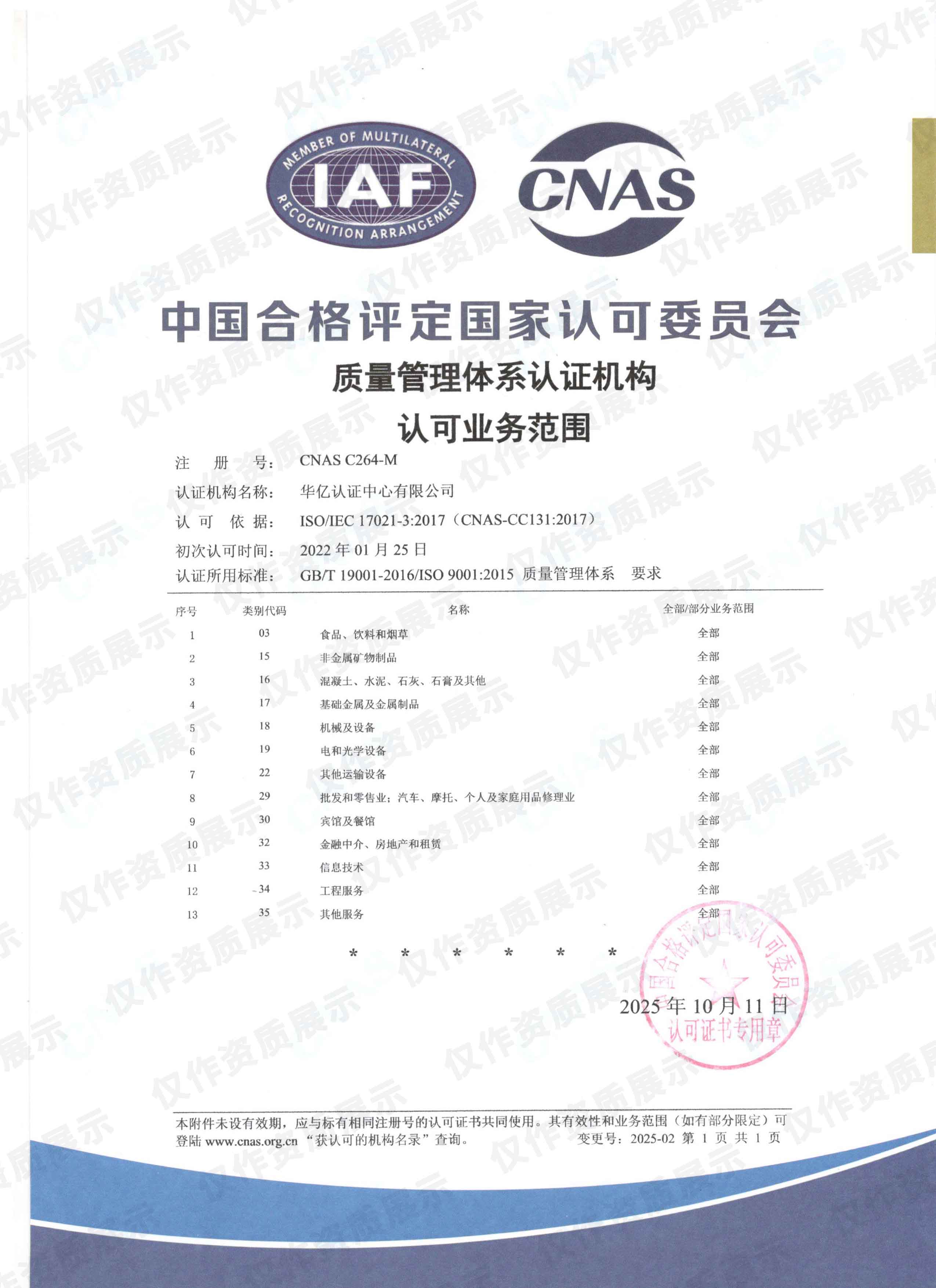 华亿认证中心EMS、OHSMS通过CNAS扩项评审!